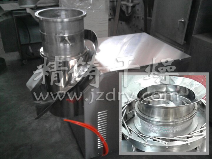 葉面肥造粒機是將混合均勻的軟材,在輾刀的擠壓下,使物料強制通過篩網,并受到刮刀的切割進而得到長度均勻的柱形顆粒。